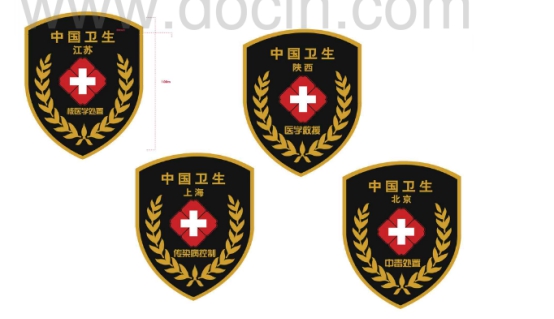 臂章正面中間位置印有“紅花白十字”,圖案上面兩行文字,***行是“中國衛(wèi)生”,第二行是承建單位或隊伍所在省份名稱;圖案下面一行文字說明隊伍的處置類別(如醫(yī)學(xué)救援等);兩側(cè)設(shè)計有環(huán)繞的麥穗圖案。