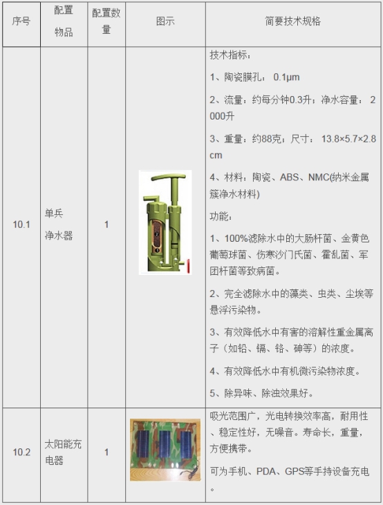 個(gè)人攜行裝備單元配置表