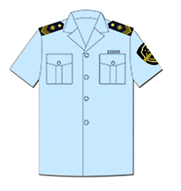說明:襯衫為滌棉混紡面料,顏色為深藍色,短袖襯衫為小翻領(lǐng),單排四???,兩個明口袋。長袖襯衫為豎領(lǐng),單排五???,兩個明口袋;西服簡褲或裙子為毛滌混紡面料。
